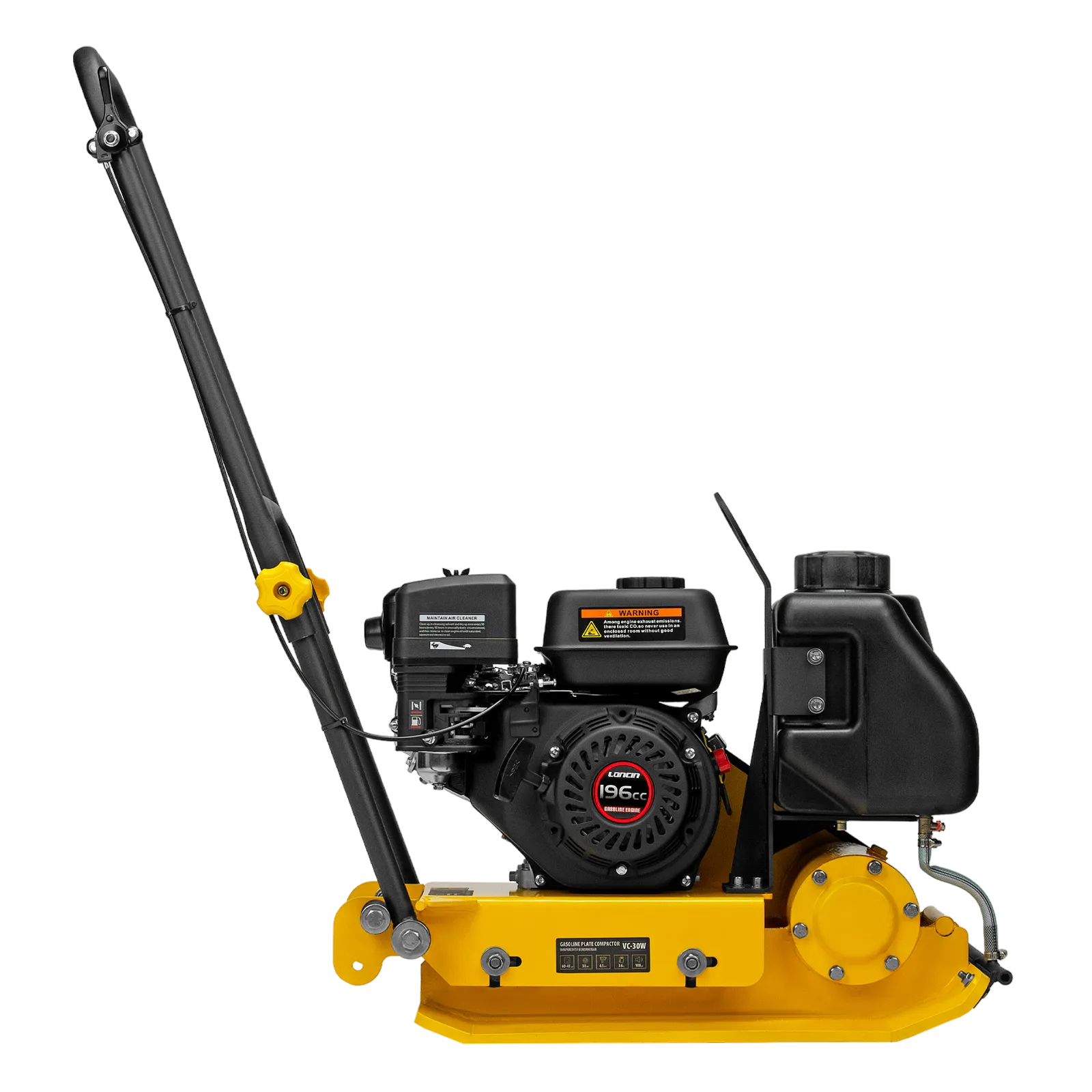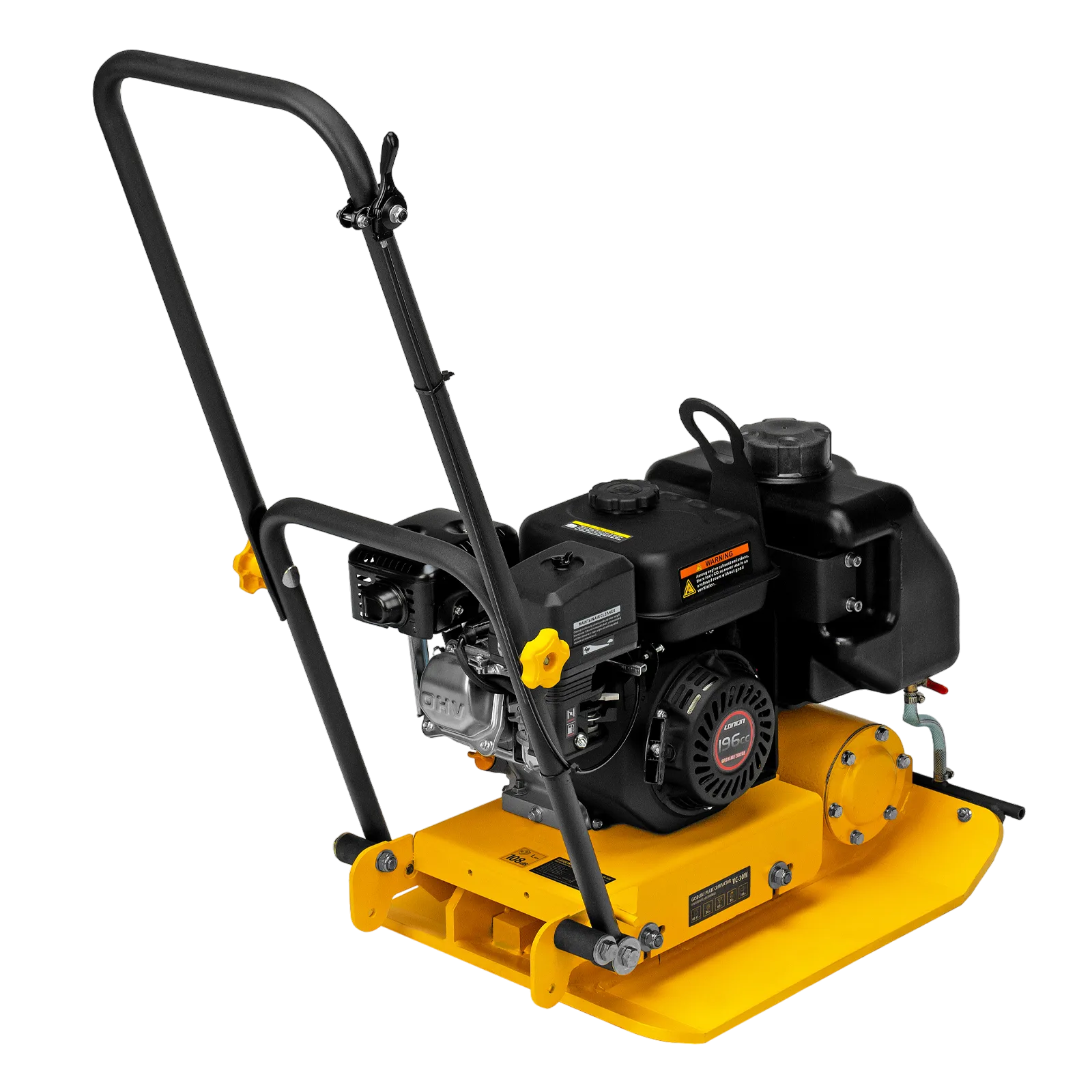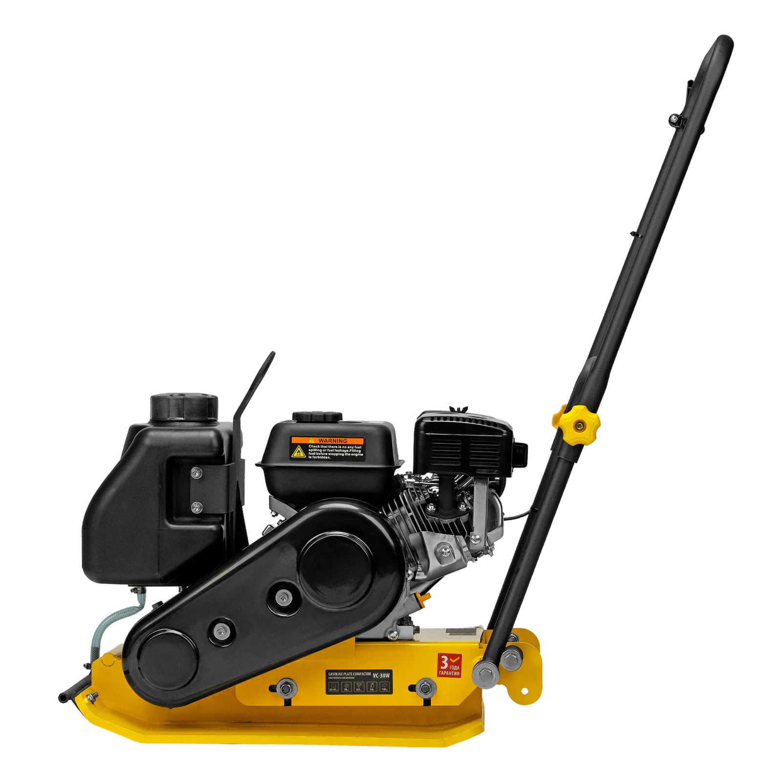 - Удобная работа с горячим асфальтом и липкими смесями — на виброплите установлен бак для воды, орошение уплотняемого покрытия предотвращает его налипание на основание плиты.
