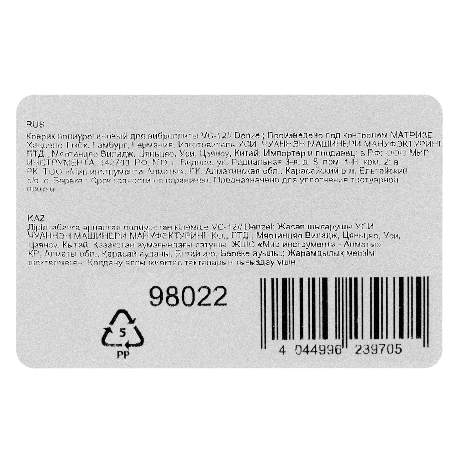Полиуретановый коврик Denzel 98022 предназначен для установки на виброплиту Denzel VC-30W. Используется во время укладки тротуарной плитки. Обеспечивает бережное уплотнение на любых поверхностях.